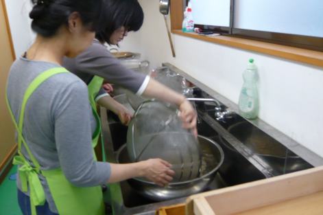 折角ざるの中で締めてるんだから、ボウルにぶちまけちゃダメだよ〜