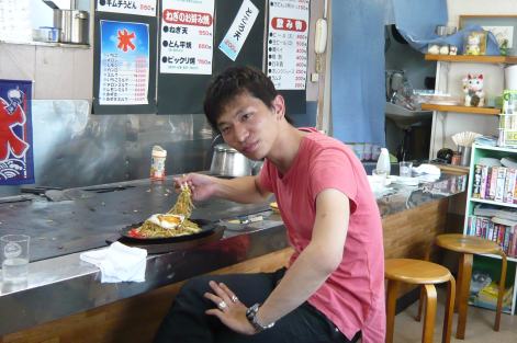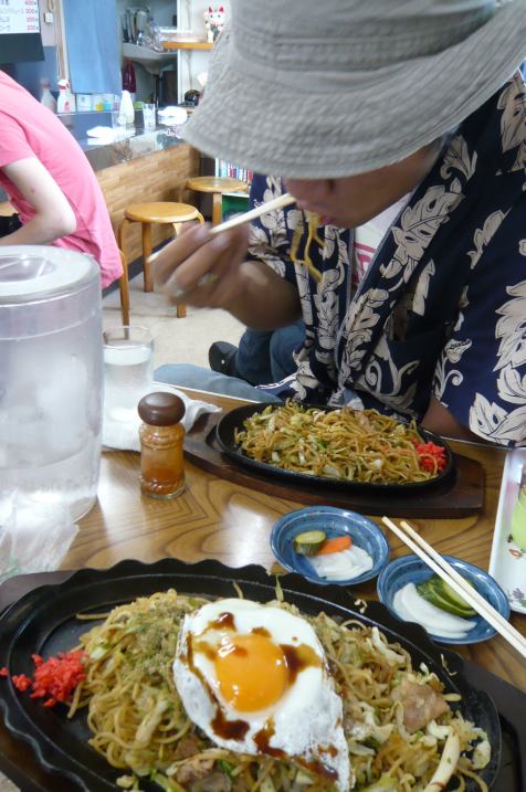 一転、灼熱の鉄板の前で話題の富士宮やきそば、喰うど〜
