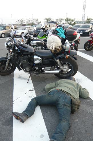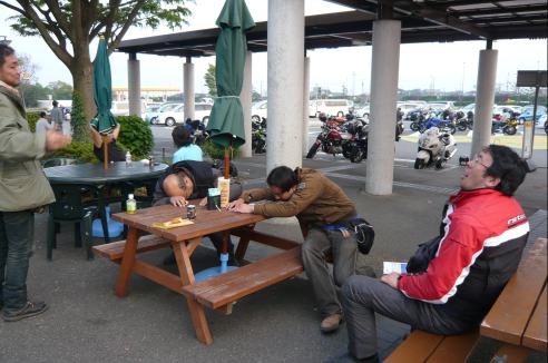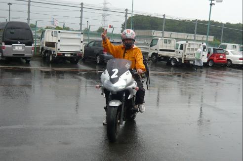 ステップとアクセルの応急修理をして、再車検を受けて第2ライダーのS井君に交代して再スタートです!