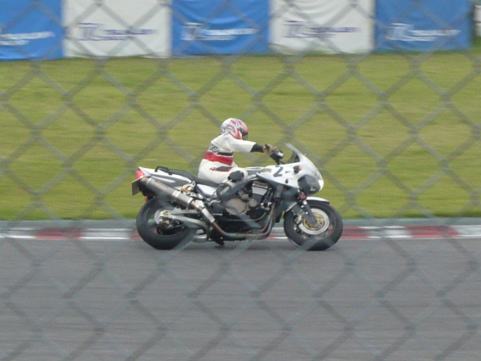 それでも転倒者が続出!常にイエローフラッグが振られている状態で、S井君もイエロー区間で追い越しをしてしまい、ペナルティのピットインとなりました。