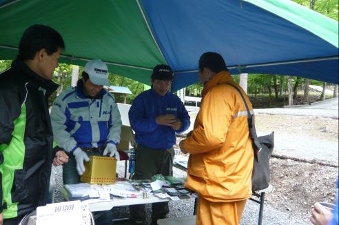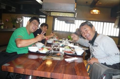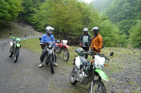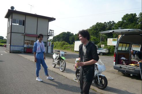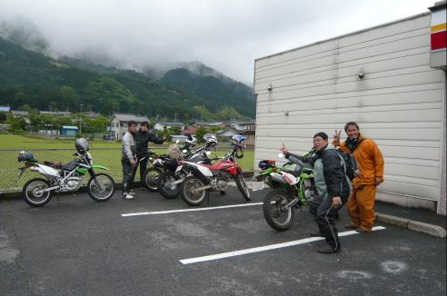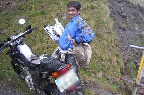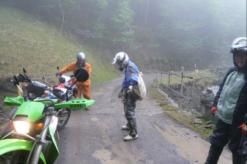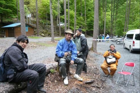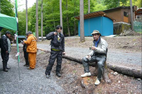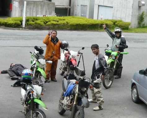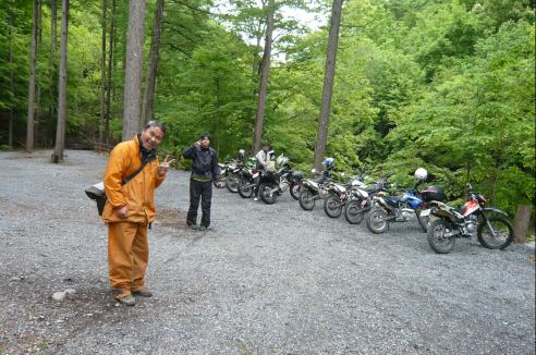 林道を抜けて一休み、ですがS井くんは飛ばしすぎたのか、ぶっ倒れてます。。。