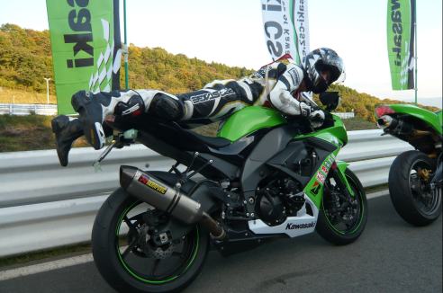 助けに行こうとしたところに、ちょうどカワサキのスタッフが代わりに上げてくれていました