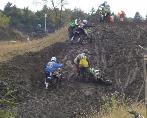 やはり裏のヌタヌタで、お互いに真っ直ぐ走れずに接触〜