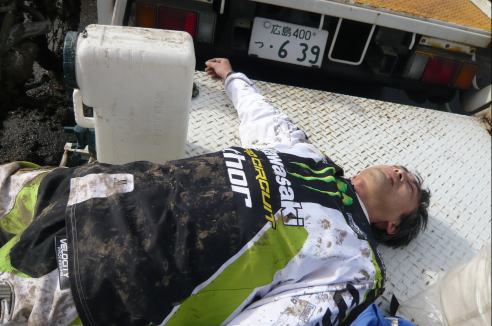 ヘルメットを脱ぐ気力も失せているみたいですな