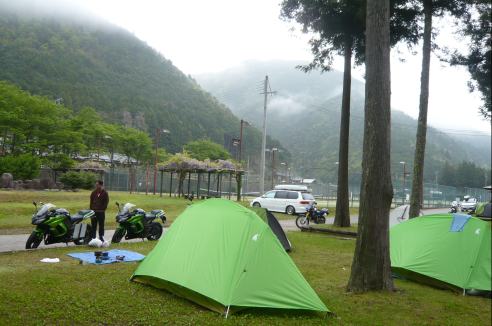 オバチャンの包囲網を何とか突破して、市内の神野々緑地キャンプ場へたどり着きました〜