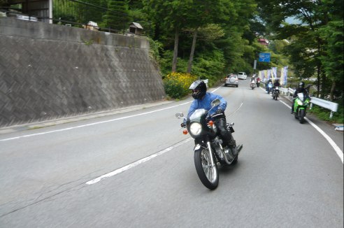 サスペンションがしっかりしているのでコーナリング中の沈み込みが少なく、ちょっと上がったステップと相まってあまりステップをガリガリと擦ることもなく、結構いいペースで走れます