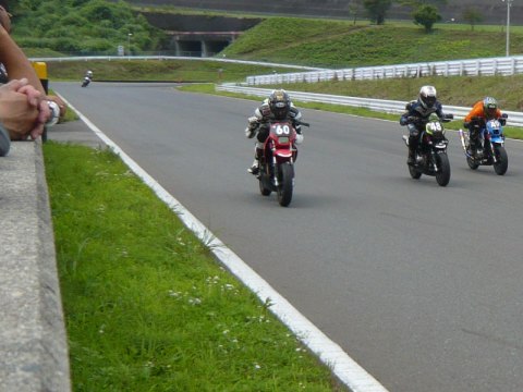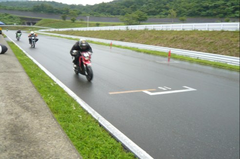 S井くんが走り始めてしばらくしたら雨も止んできましたが、路面は完全にウェットでペースが上がっていませんでしたが、やはり慣れてきたところで・・・