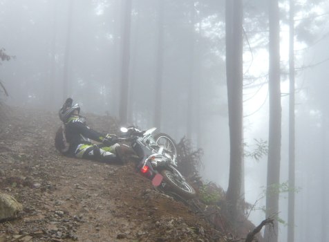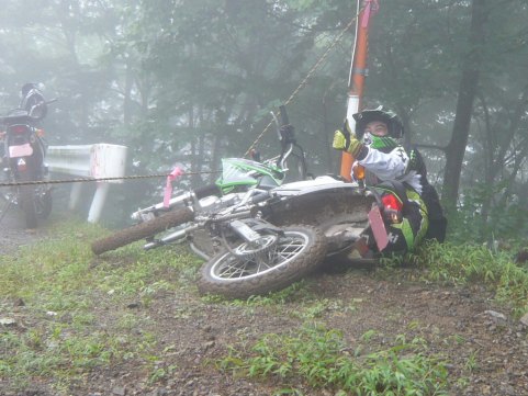 全体のペースが一気に落ちましが、全部がウェットになってしまえばまた少しずつペースも上がり、意外と滑らないかな〜と思っていた矢先に・・・