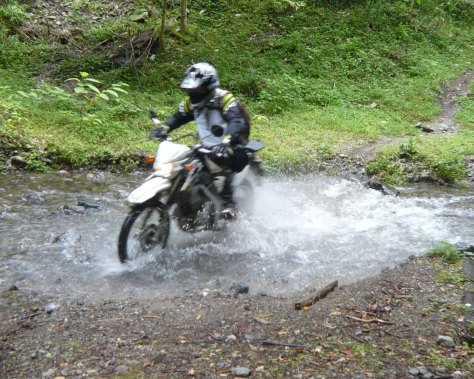 雨で滑りやすいコース上を、20〜30mくらいシャ〜ッと滑っていきました