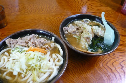 私は肉うどんの大、奥は富士山うどんです〜