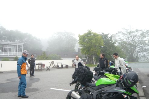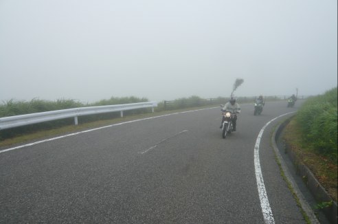 霧も出てきたので、メッシュジャケットの人はカッパを着て凌いでいます。。。