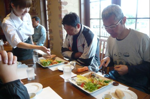 今回初参加のS敷くん、ちょっと上半身が固いかな〜