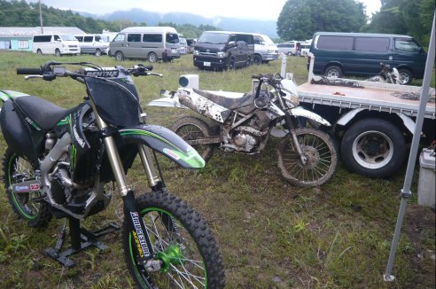 私は今回マーシャルを仰せつかっていたので、KX250Fでも走っちゃお〜と思って持ってきましたが、この雨で走る気にならず・・・