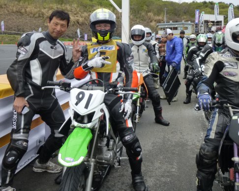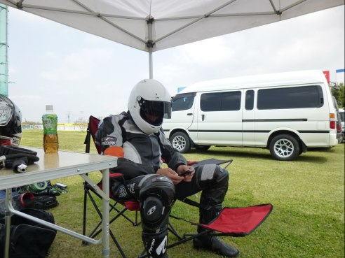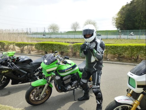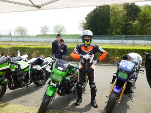 続いてピカピカのレザースーツで、超久しぶりのサーキット走行というO田さんの番です!