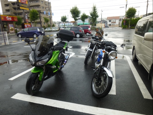 雨はすぐに止んで晴れ間も出てきた感じでしたが、瑞穂の辺りでまたちょっと降り始めたのでコンビニ休憩です。